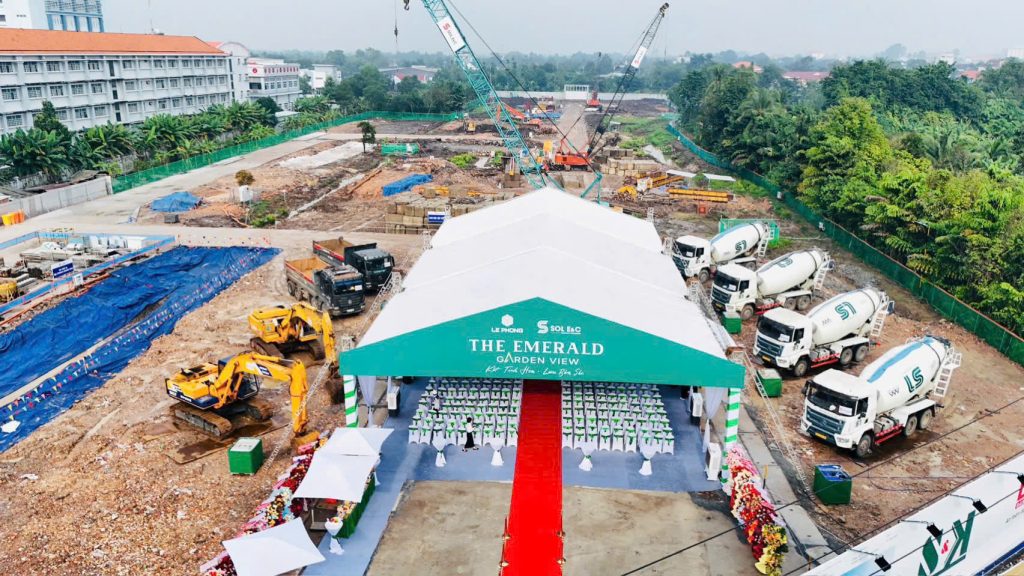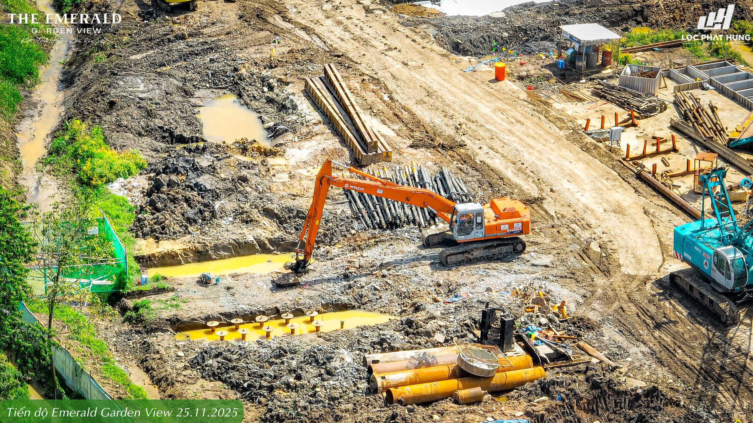Dự án The Emerald Garden View đã hoàn tất công tác chuẩn bị mặt bằng và triển khai thi công nền móng. Hai tháp căn hộ đang được đẩy nhanh tiến độ thi công, hiện một số hạng mục kết cấu đã lên tầng và tiếp tục hoàn thiện phần thân theo đúng kế hoạch.
